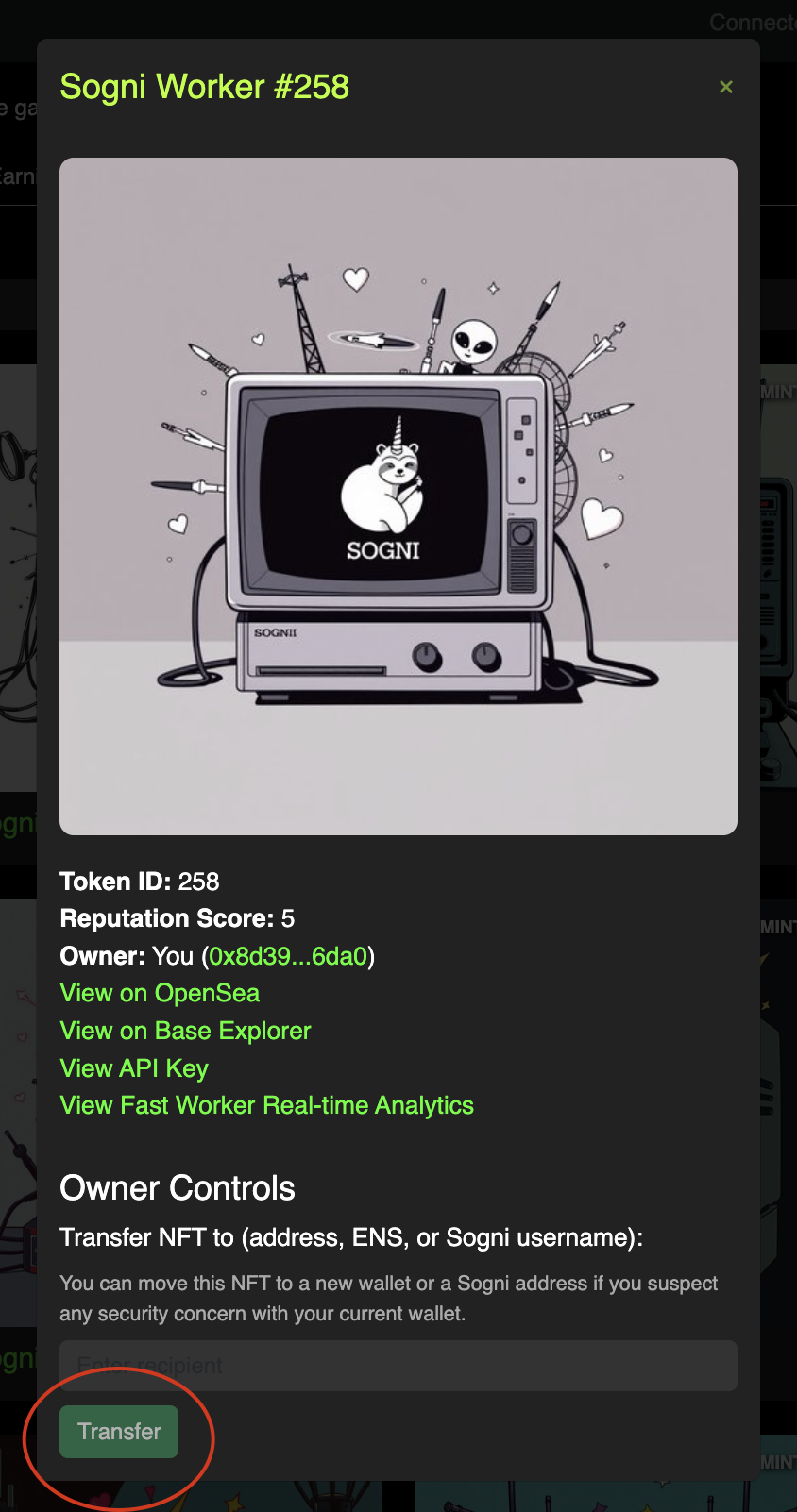 Just note that when you transfer a Fast Worker NFT the jobs analytics and history, and leaderboard ranks are attached to the NFT and not to the Sogni account address. So if you transfer the NFT to another account, that account will take over the displayed username, addresss, rank and score in terms of Fast Worker Leaderboard.