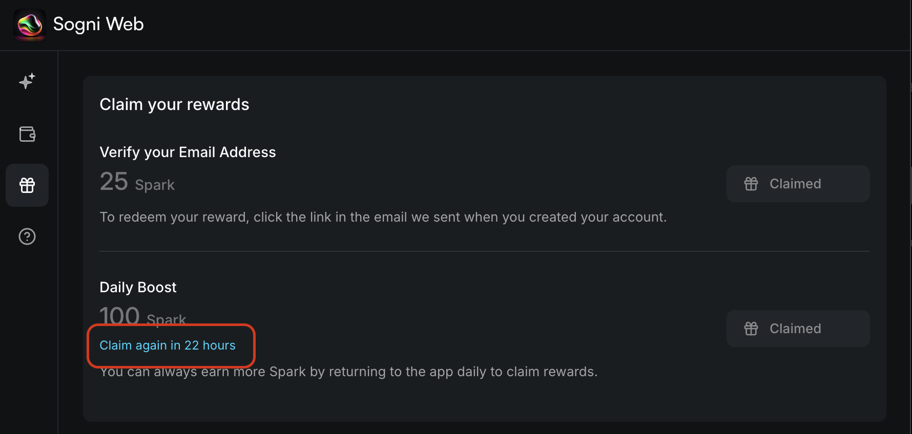 Every 24 hours you can claim a Spark Points "Daily Boost".
