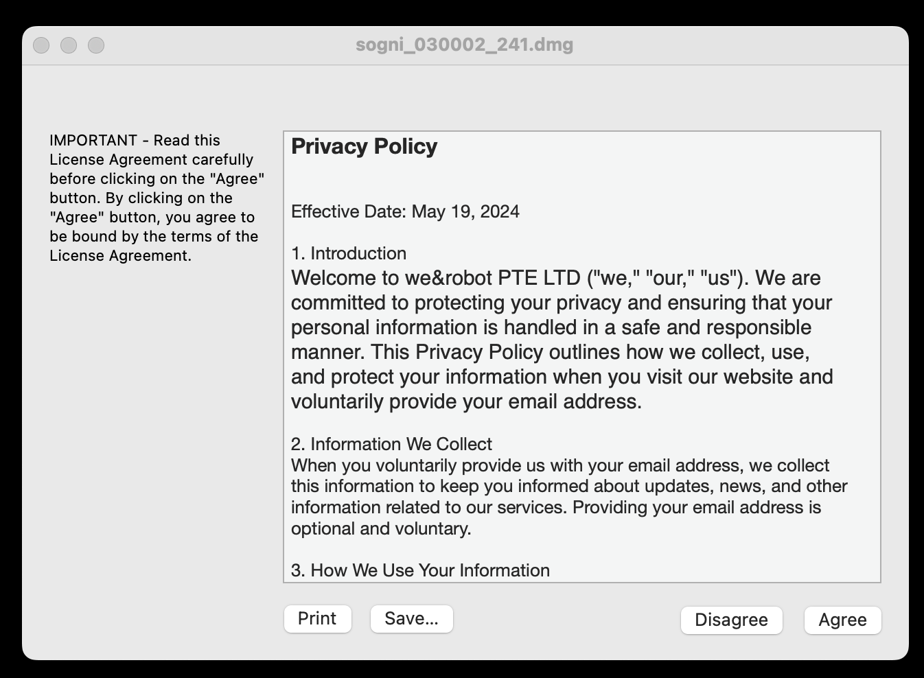 Once downloaded, open the dmg file on your Mac. You will be prompted to review and agree to our Privacy Policy.