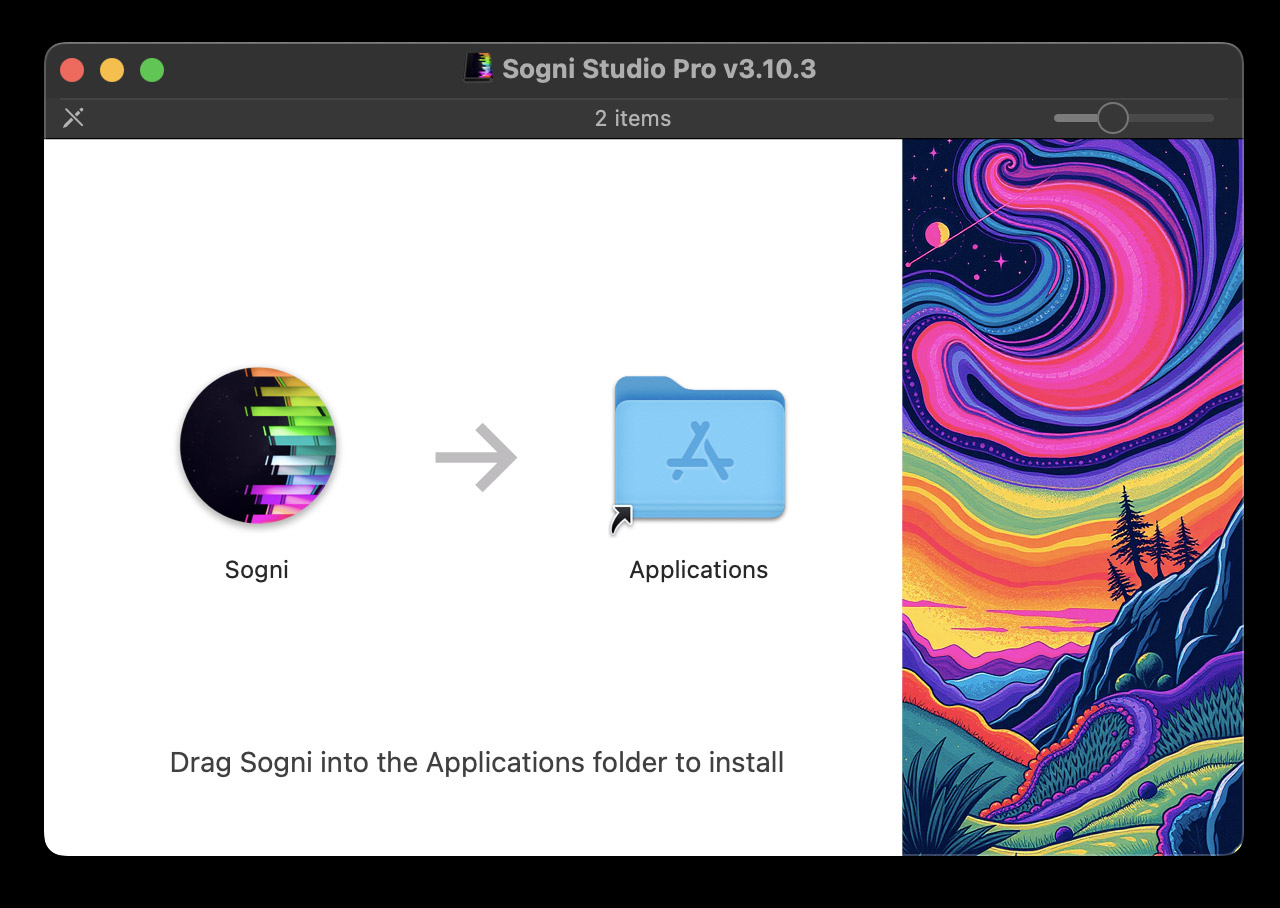 Next, drag Sogni into your Applications folder to install.