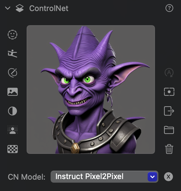 We then added this image to the ControlNet tab and selected Instruct Pixel2Pixel CN Model