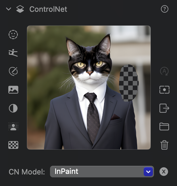 This will then load the image with the mask into the ControlNet panel with the InPaint CN Model active (you may need to wait for this to download if it's your first time using)