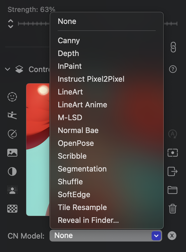 Sogni offers 14 different ControlNet models, each with different purposes and offering different results. You can easily select which model to use within the CN Model dropdown below the ControlNet reference image or video field.