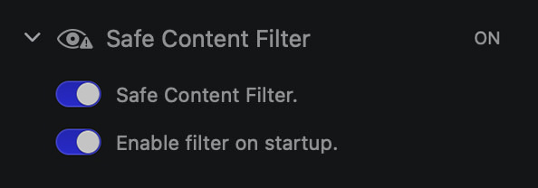Within the Safe Content Filter settings in the Advanced tab, you can toggle enabling or disabling the Safe Content Filter as well as if you would like to enable the filter on startup.