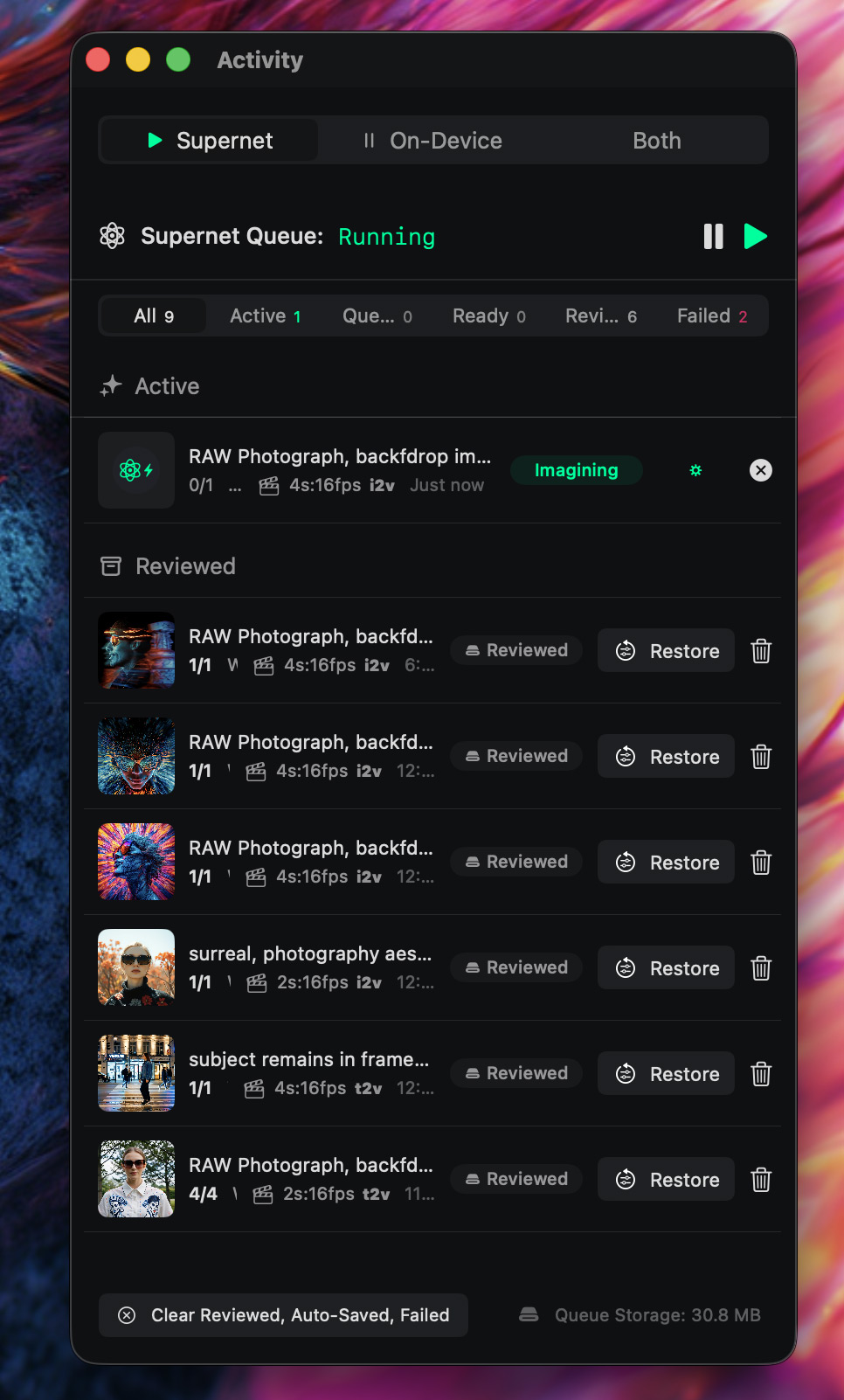When finished, the clip can be previewed, saved to the gallery, extended using frame references, or combined with other clips.